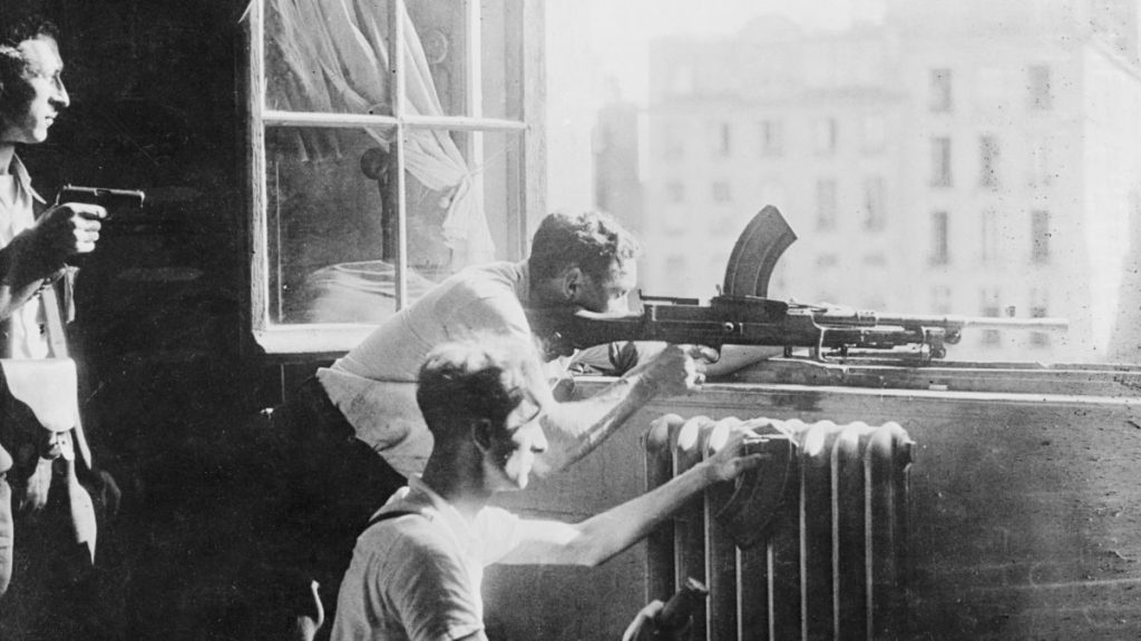 The local resistance cell, headed by Michel “Monet” Clairet, has intelligence on the number of guards and the layout of the exchange, collected by MI6 and delivered by Felicity “Flick” Clairet, as well as an inside source – Monet’s aunt. Flick, who is married to Monet, is the SOE agent-in-charge of the entire northern France region, and has been building and liaising with dozens of cells like Monet’s for more than two years now. She is on site to observe and report back to her superiors the success or failure of the mission. Sitting at a roadside café with Monet, for all intents and purposes an innocent civilian couple enjoying their time together, she watches as the team move surreptitiously into position. As the church bell nearby tolls the hour, they swing into action.