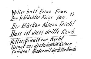 For six months, they regularly drop the postcards in places people are bound to find them. In their minds, they envision a slowly rising swell of resistance born of their messages, laying the groundwork for when the masses would rise as one against their Nazi masters. They could not be further from the truth, however. Almost all their postcards, once discovered, have been handed over to the Gestapo immediately by the finders, who are desperate to convince the police they had nothing to do with them. The Gestapo for their part initially treats them as a random incident, but as their frequency increases become annoyed enough to appoint an inspector to solely focus on this case.